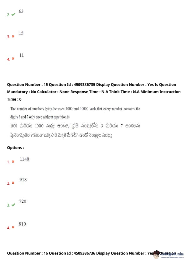 A test containing 3 objective type of questions is conducted in a class. Each question has 4 options and only one option is the correct answer. No two students of the class have answered identically and no student has written all correct answers. If every student has attempted all the questions, then the maximum possible number of students who have written the test is: