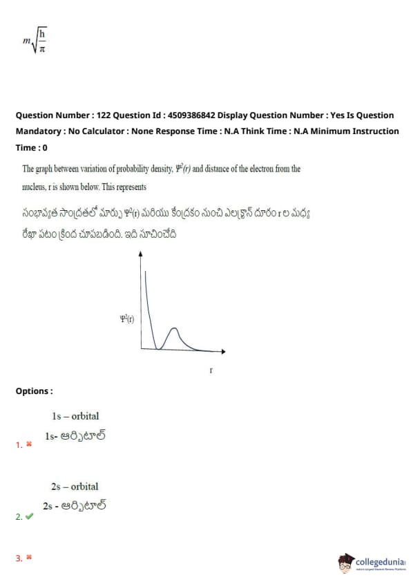 The graph shown below represents the variation of probability density, \( \Psi(r) \), with distance \( r \) of the electron from the nucleus. This represents: