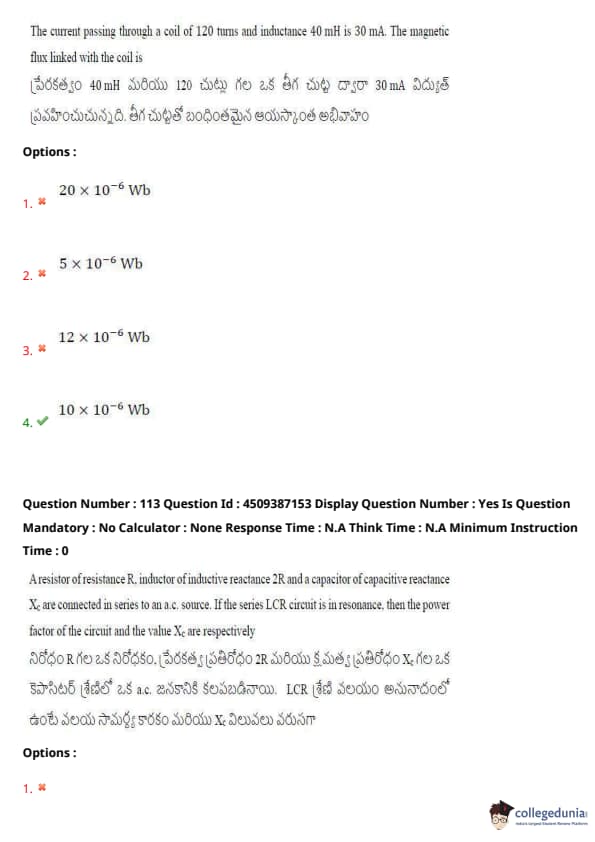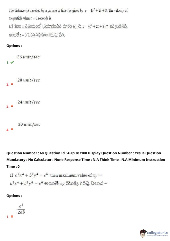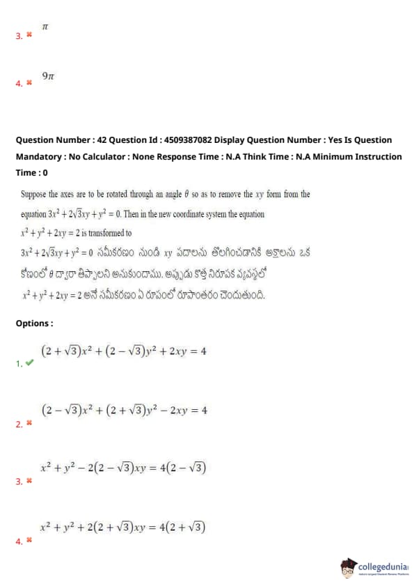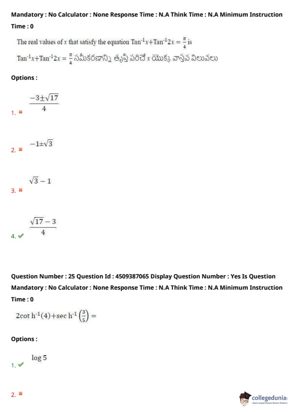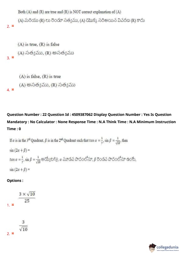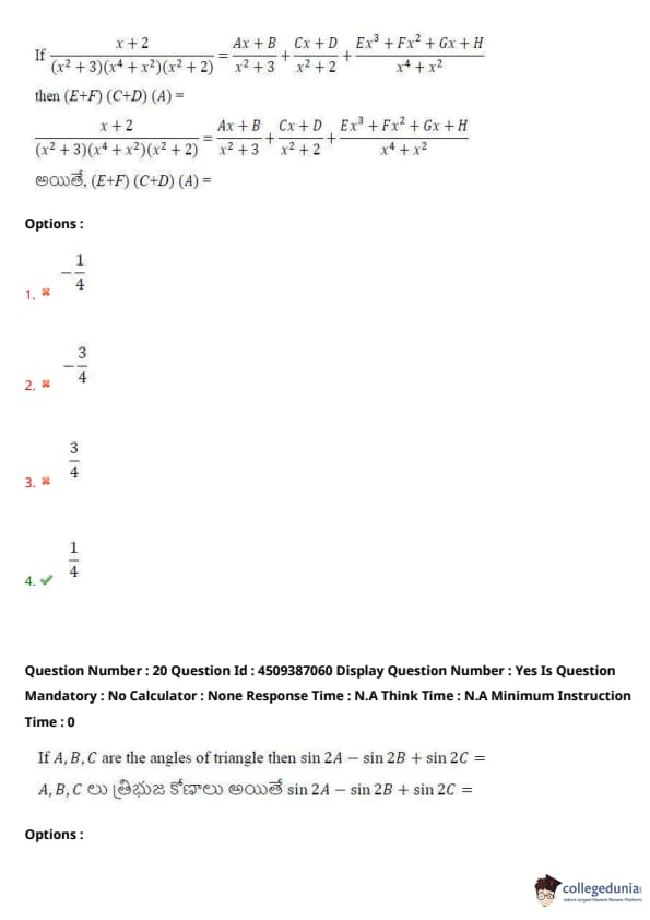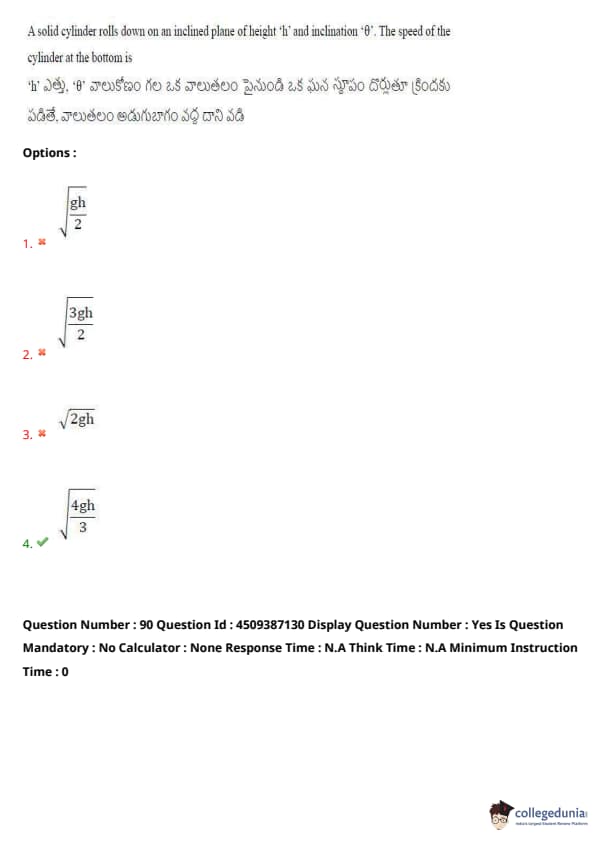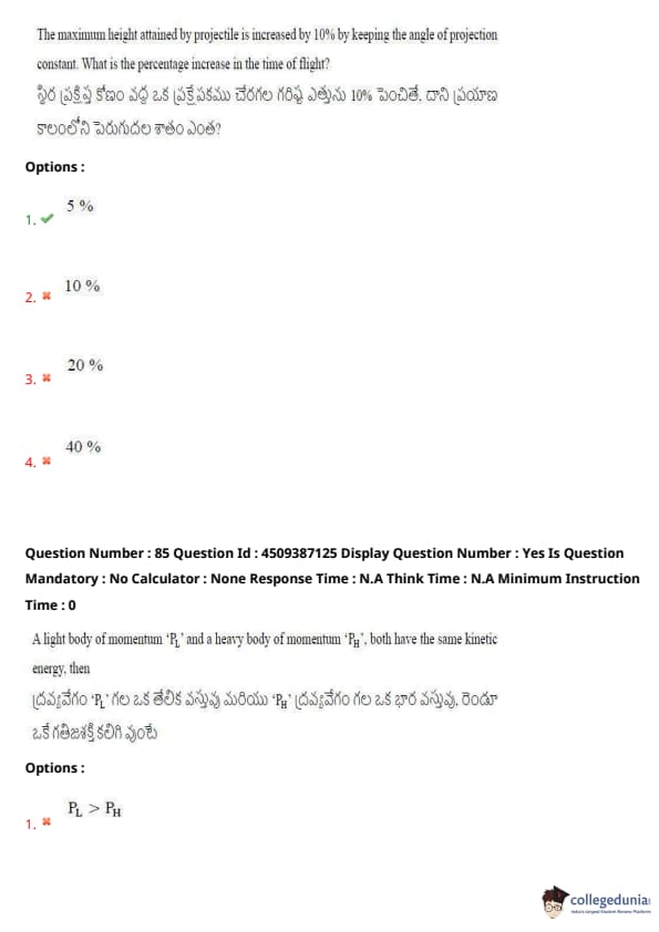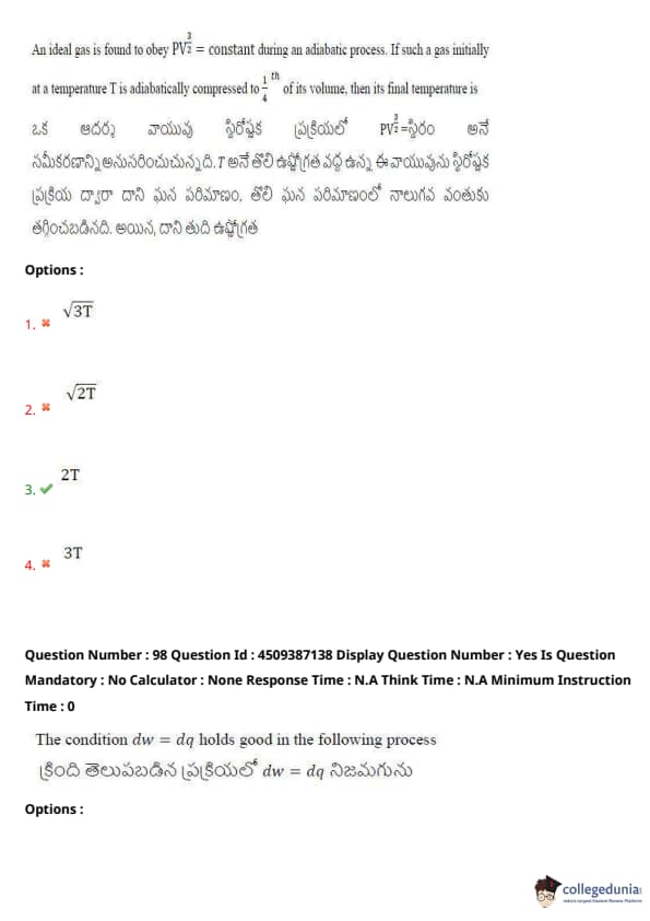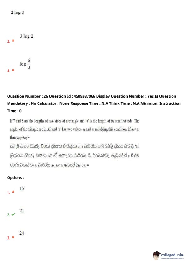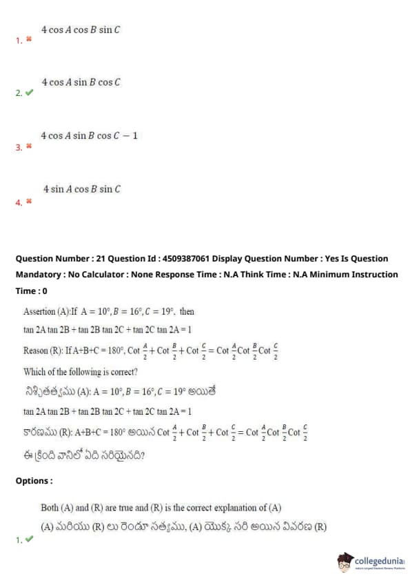 | AP EAPCET 2024 May 21 Shift 2 Question Paper with Answer Key | Check Solution |