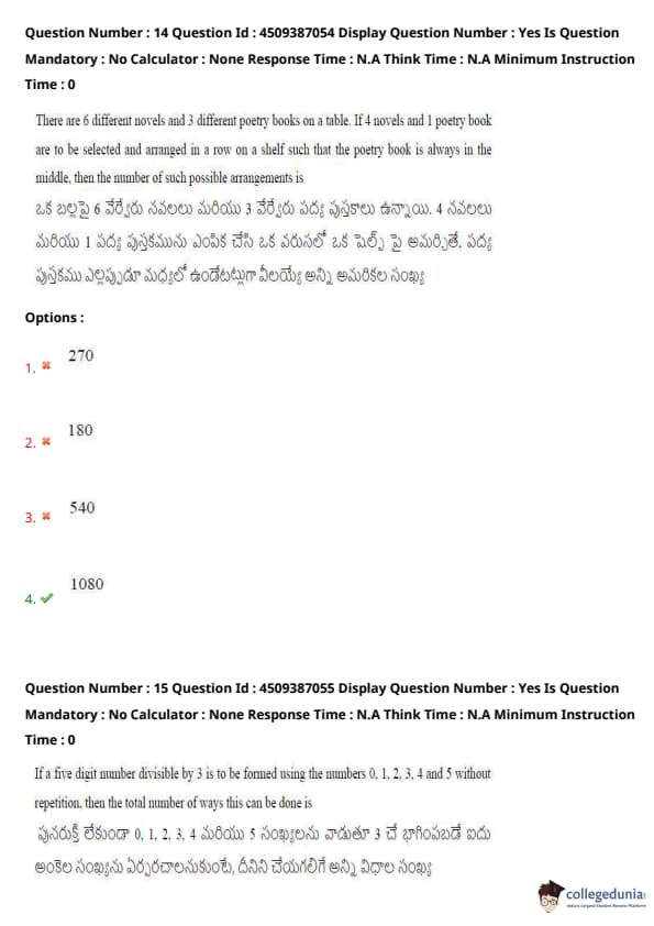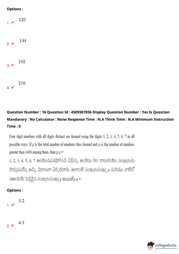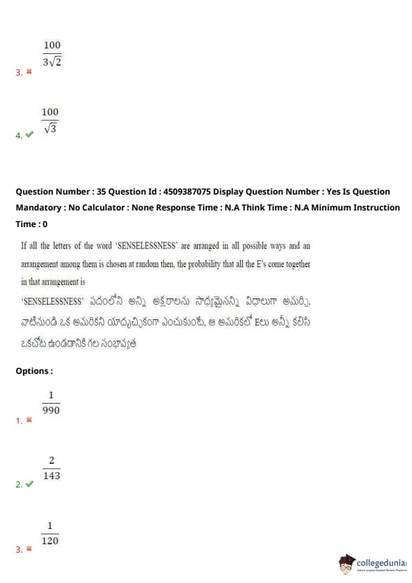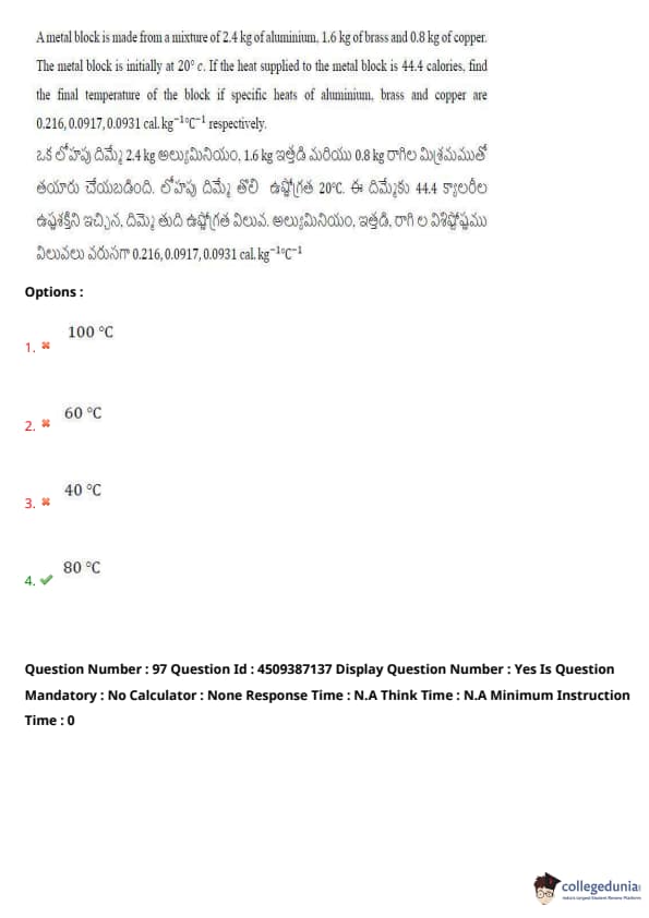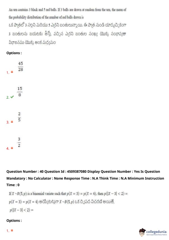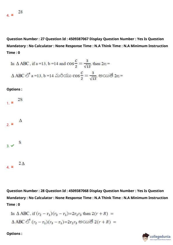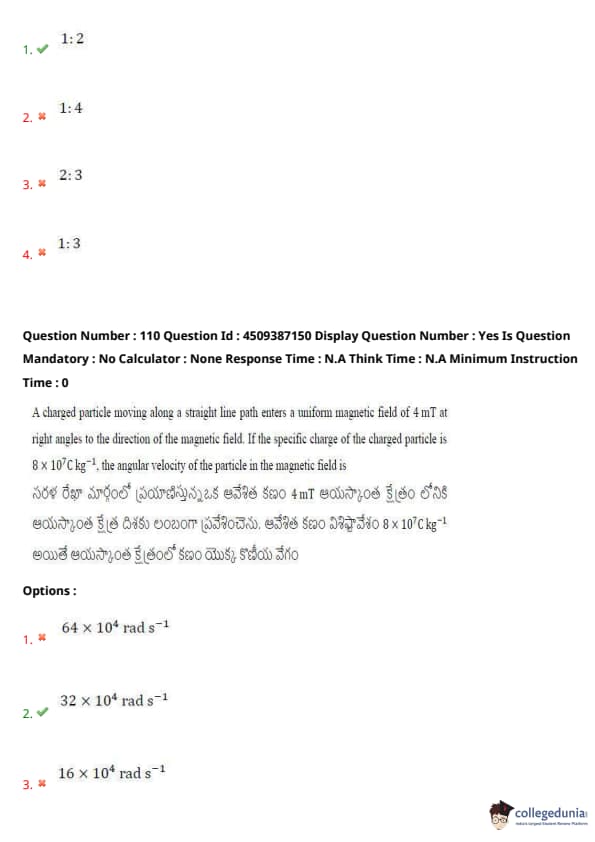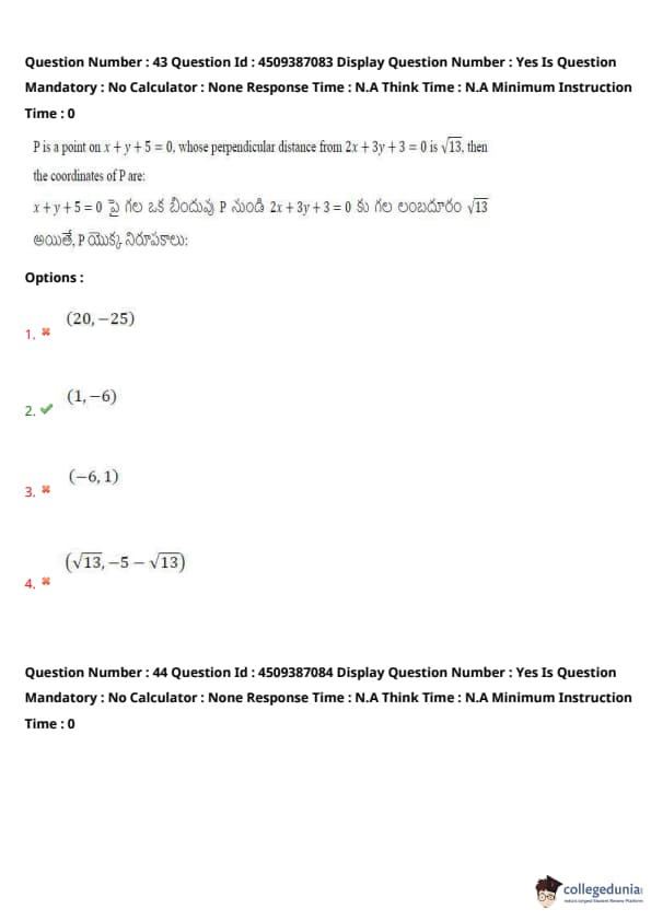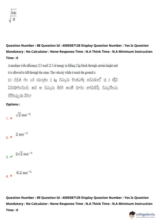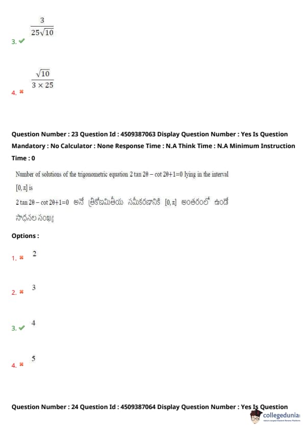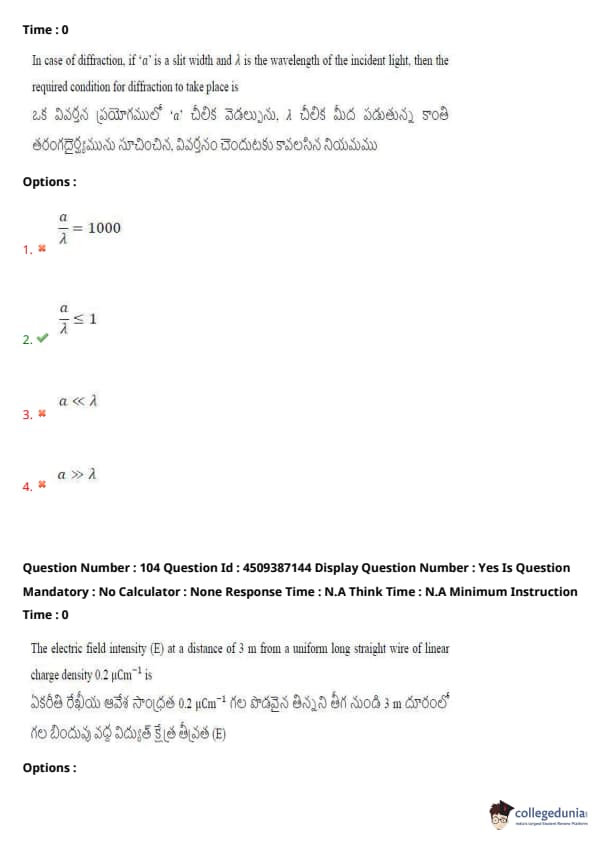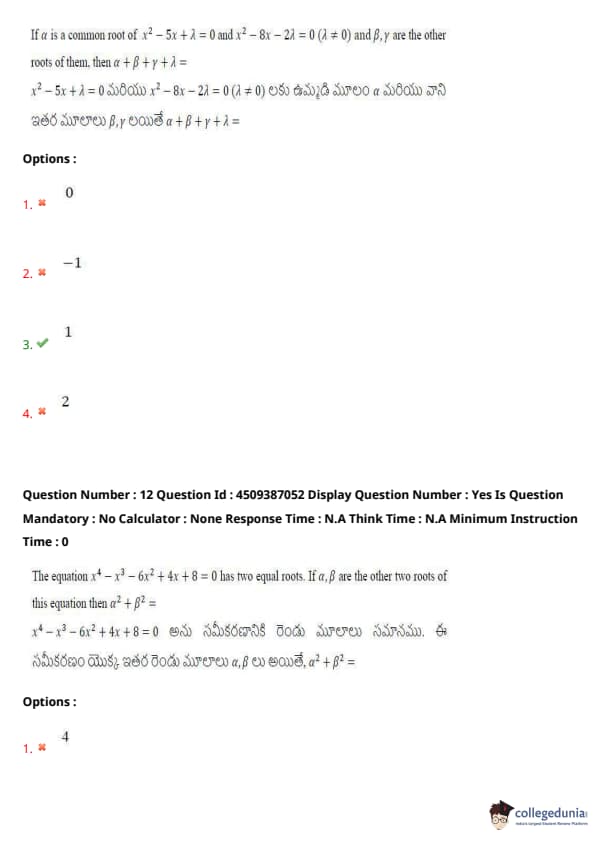 | AP EAPCET 2024 May 21 Shift 2 Question Paper with Answer Key | Check Solution |