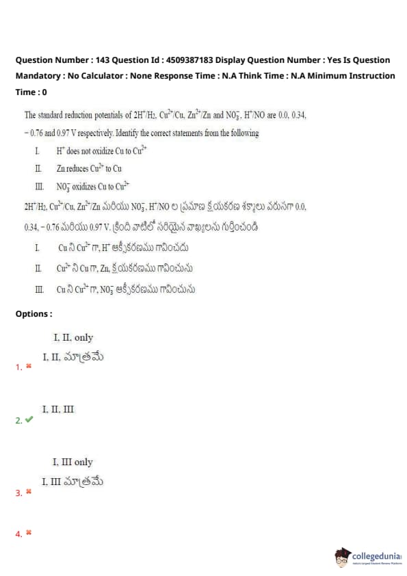 III. \( NO_3^- \) oxidizes \( Cu \) to \( Cu^{2+} \).