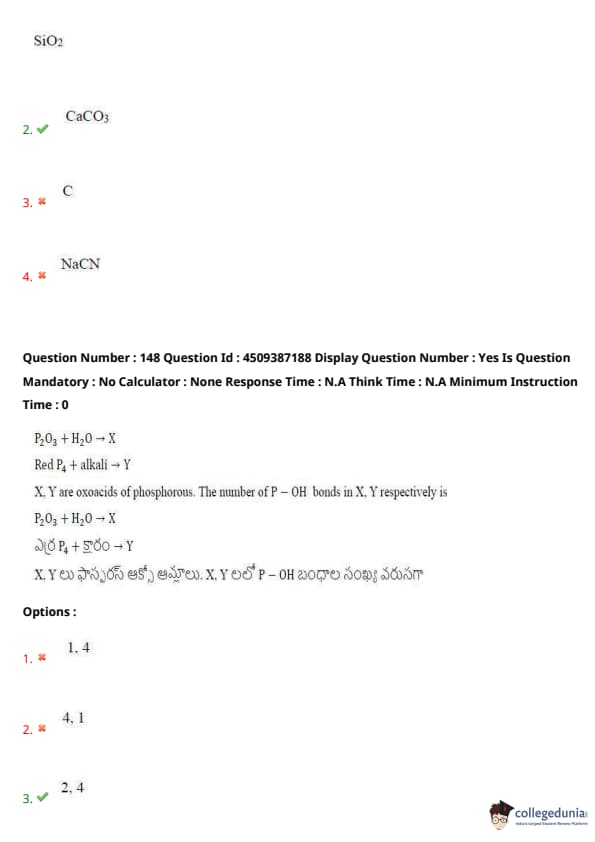 X, Y are oxoacids of phosphorous. The number of P – OH bonds in X, Y respectively is: