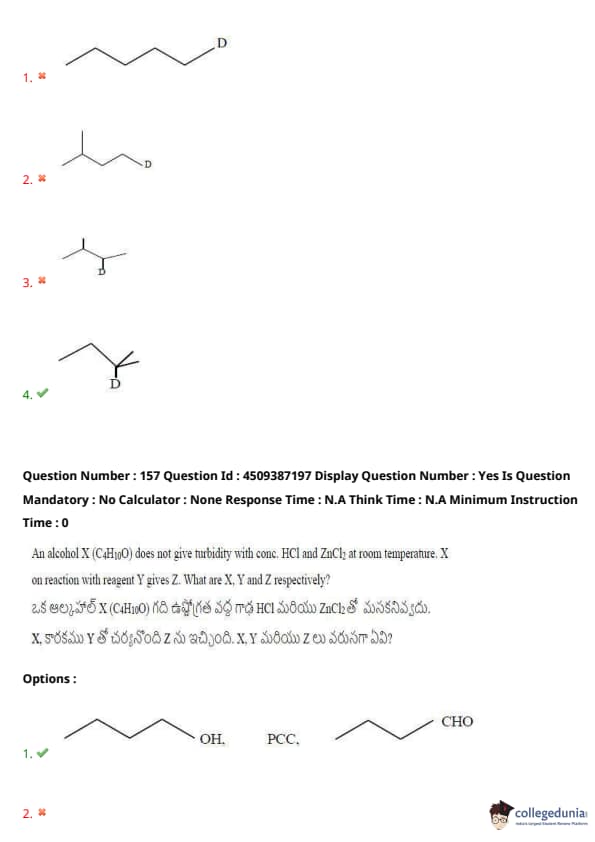 An alcohol \( X \) (\( C_4H_{10}O \)) does not give turbidity with conc. HCl and ZnCl\(_2\) at room temperature. \( X \) on reaction with reagent \( Y \) gives \( Z \). What are \( X \), \( Y \), and \( Z \) respectively?