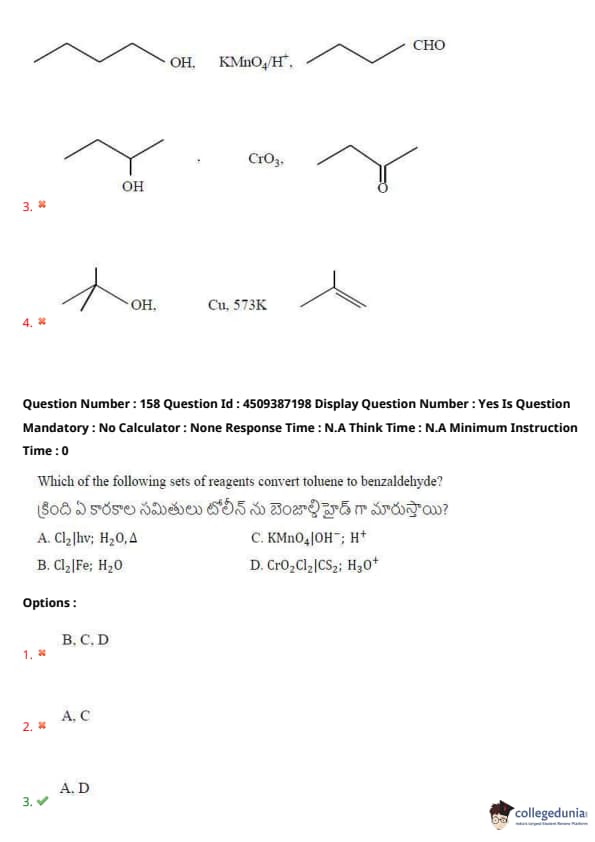 Which of the following sets of reagents convert toluene to benzaldehyde?