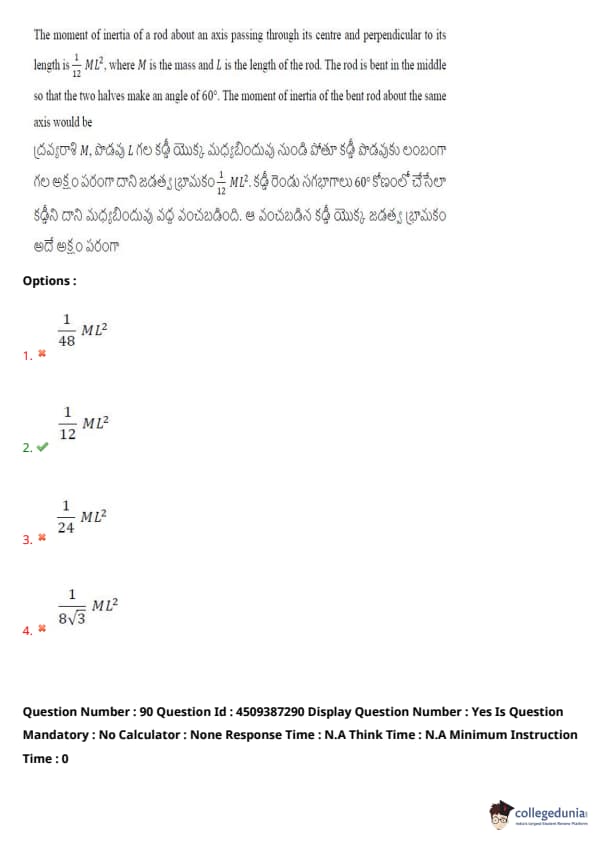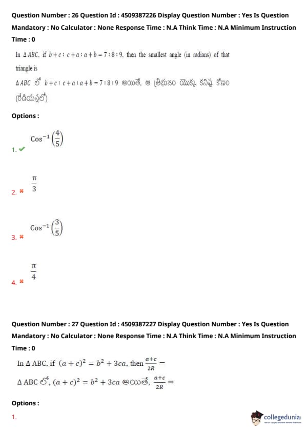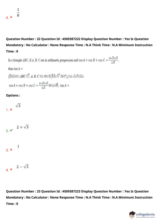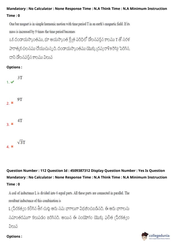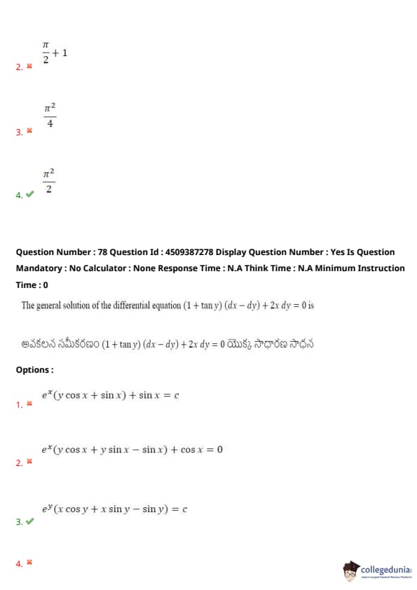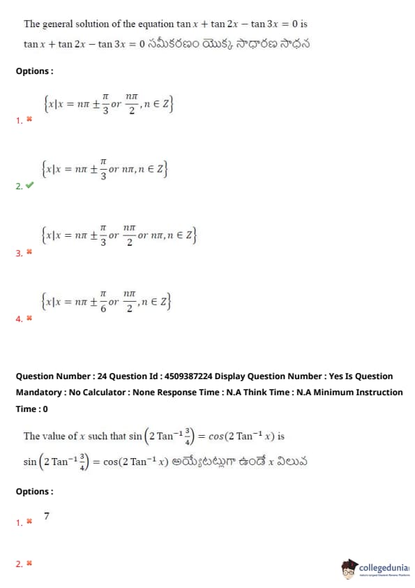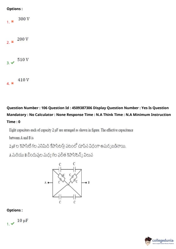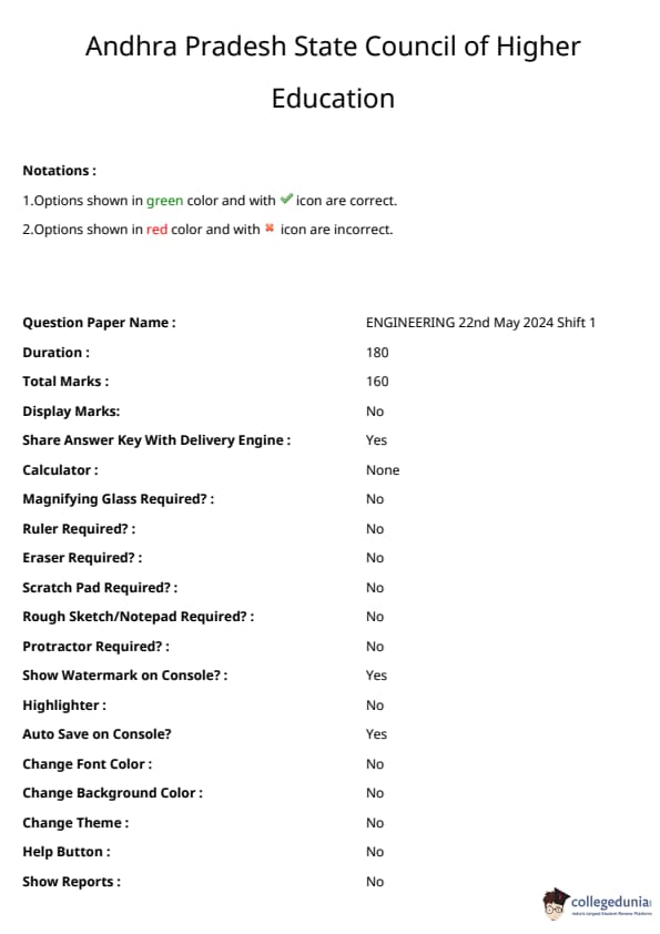 | AP EAPCET 2024 May 22 Shift 1 Question Paper with Answer Key | Check Solution |