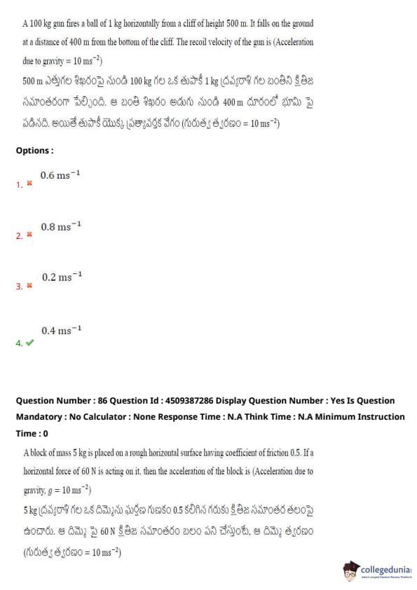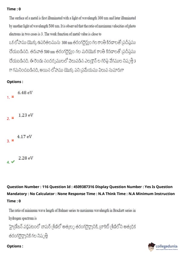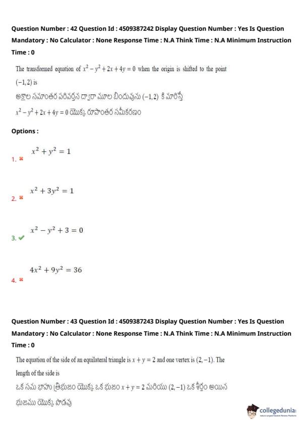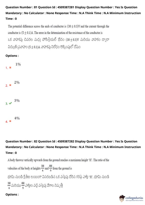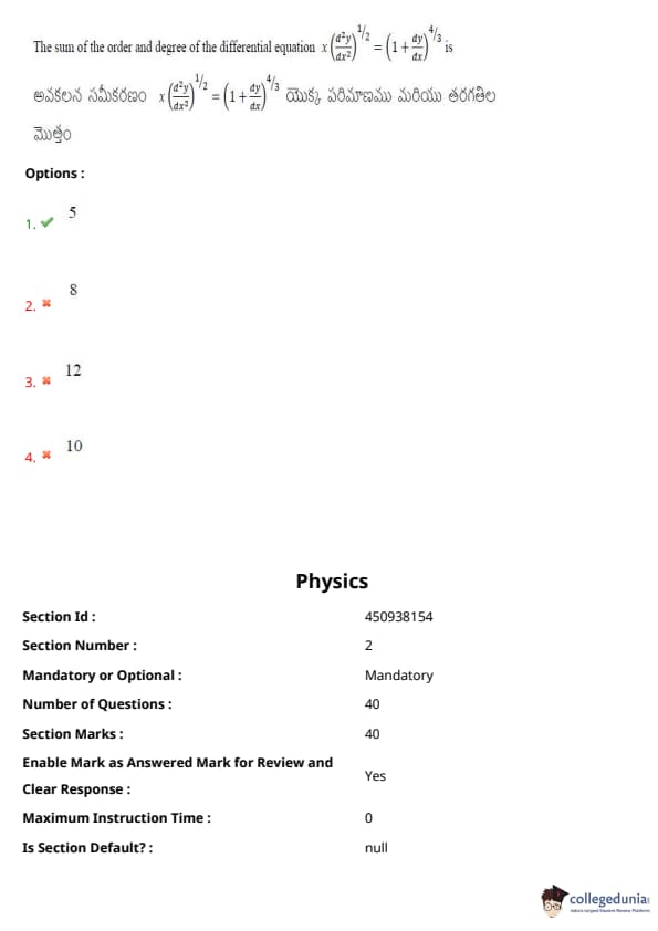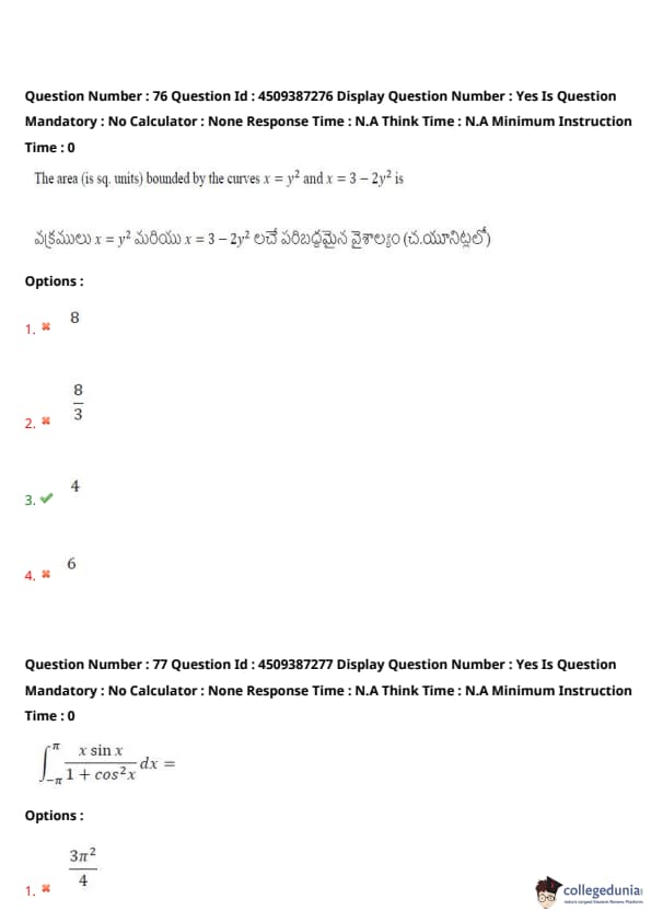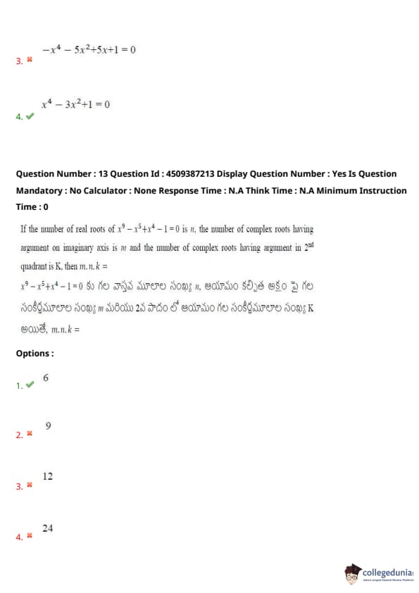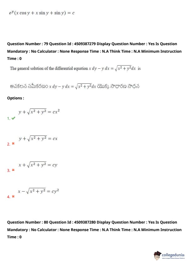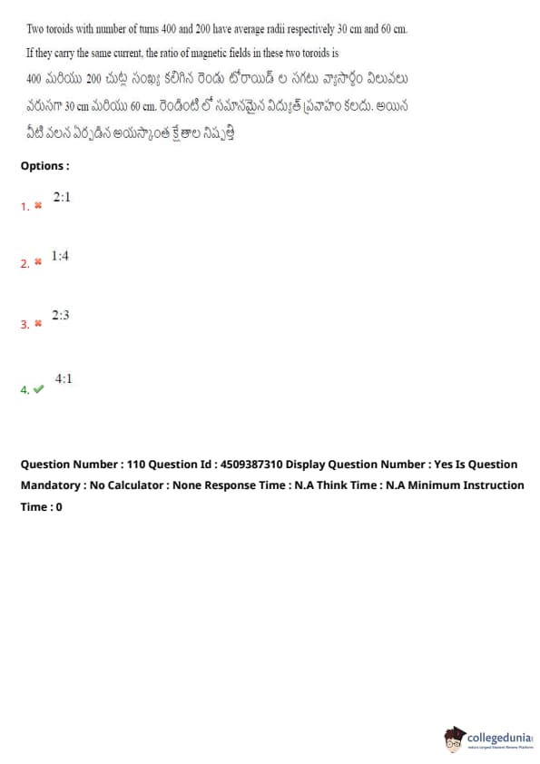 | AP EAPCET 2024 May 22 Shift 1 Question Paper with Answer Key | Check Solution |