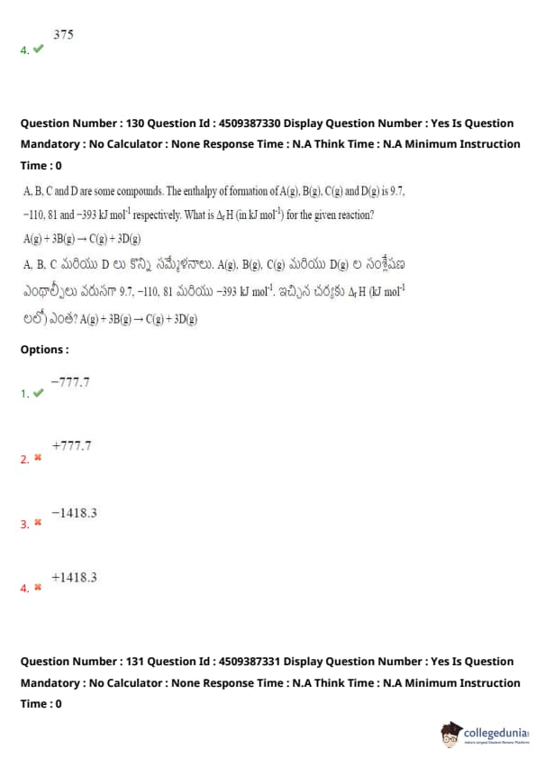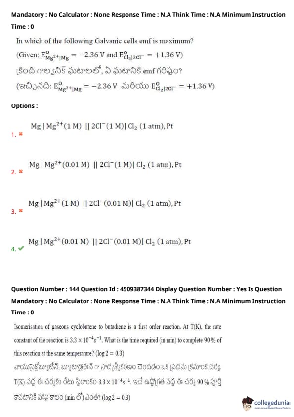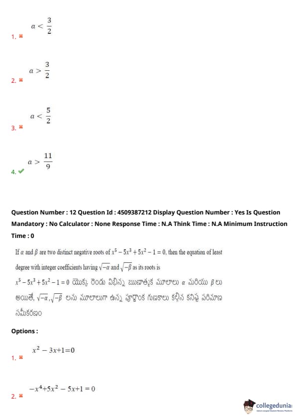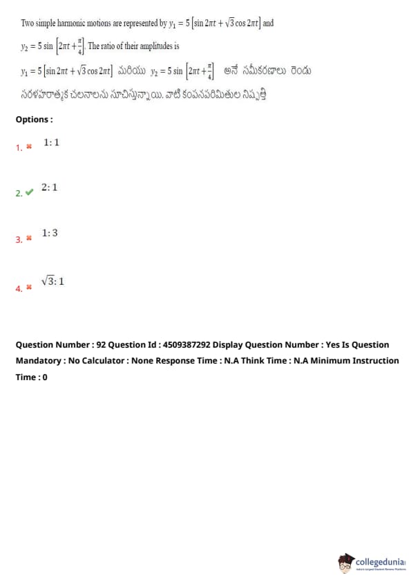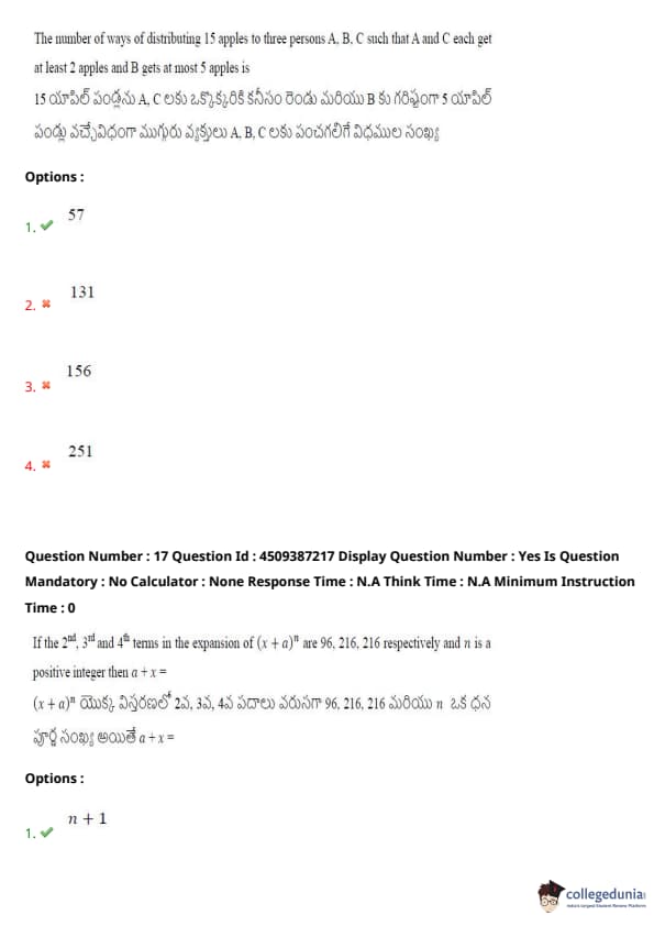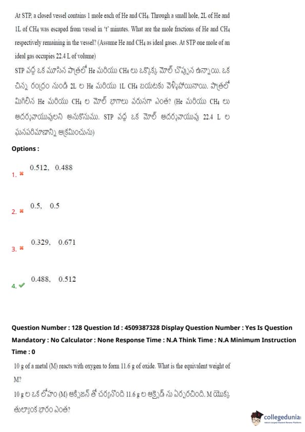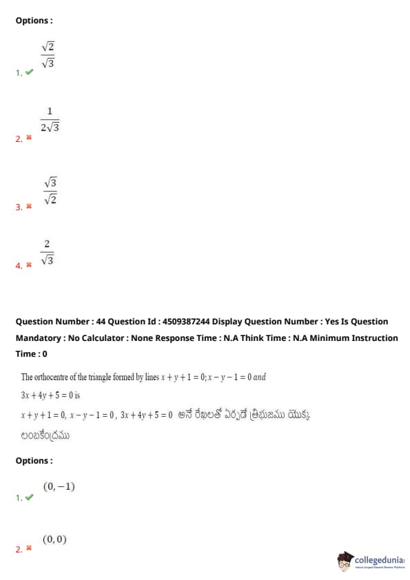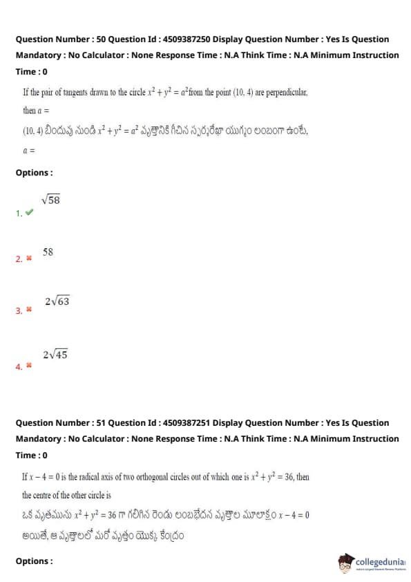 | AP EAPCET 2024 May 22 Shift 1 Question Paper with Answer Key | Check Solution |