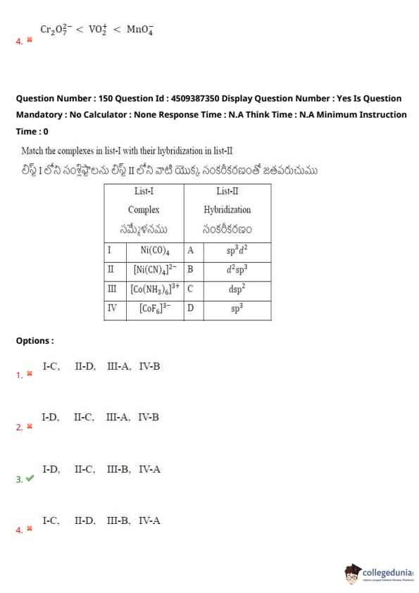 Match the complexes in list-I with their hybridization in list-II.