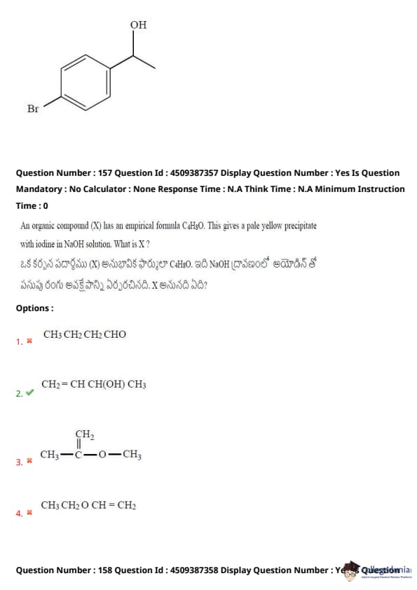 An organic compound (X) has an empirical formula C\(_4\)H\(_8\)O. This gives a pale yellow precipitate with iodine in NaOH solution. What is X?