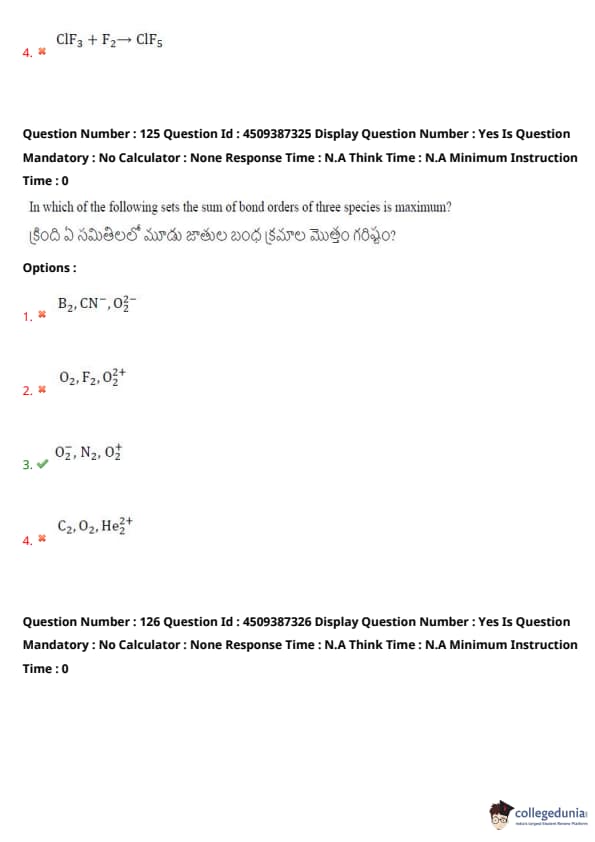 In which of the following sets, the sum of bond orders of three species is maximum?