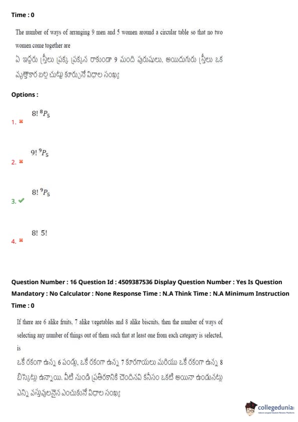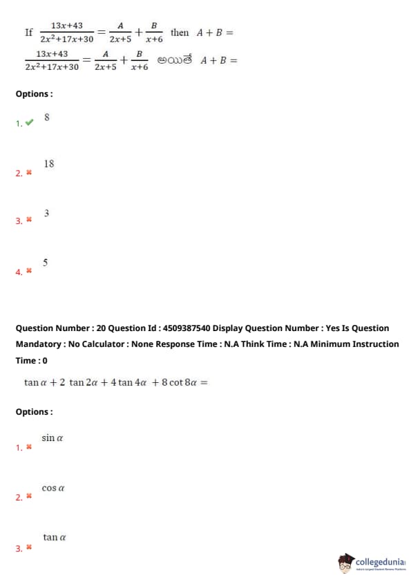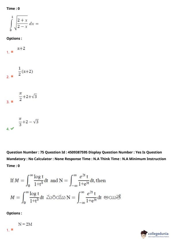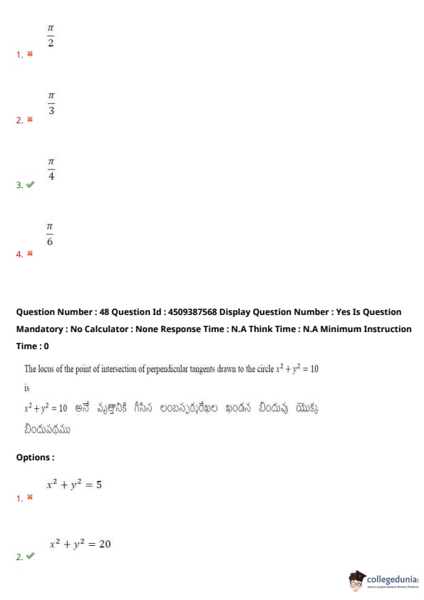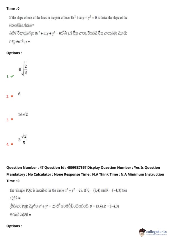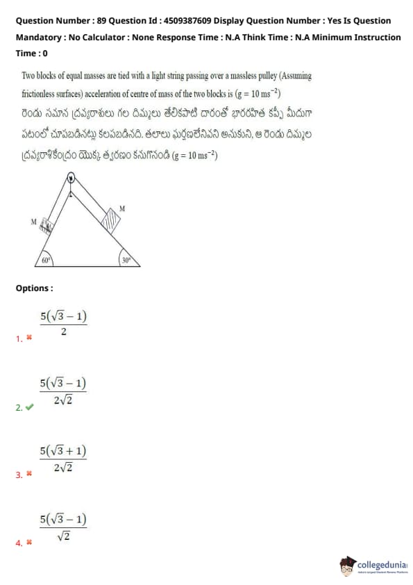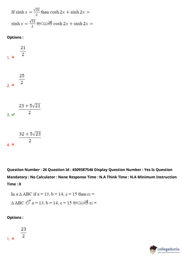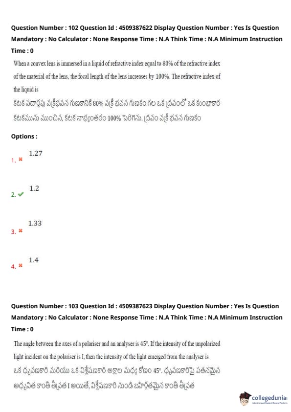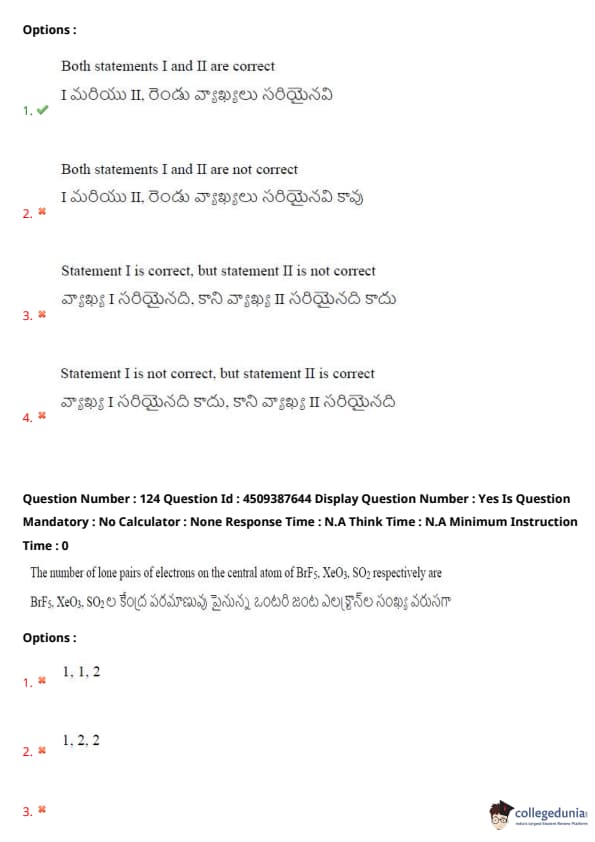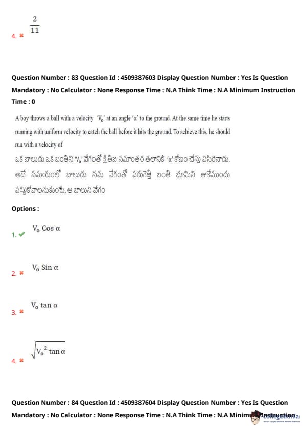 | AP EAPCET 2024 May 22 Shift 2 Question Paper with Answer Key | Check Solution |