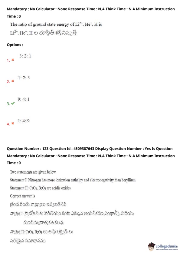 Statement I: Nitrogen has more ionization enthalpy and electronegativity than beryllium.