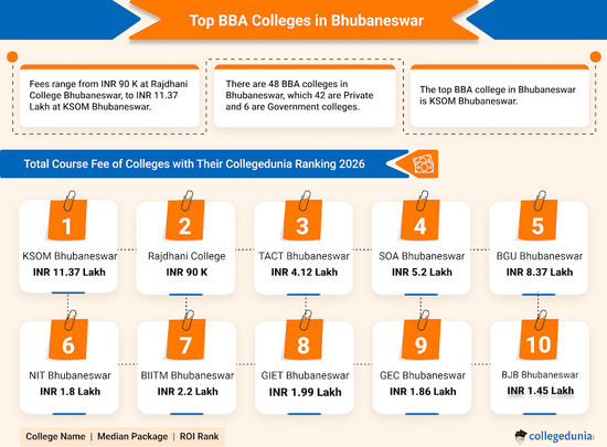 - Private BBA Colleges in Bhubaneswar: KIIT School of Management Bhubaneswar, TACT Bhubaneswar, SOA Bhubaneswar
