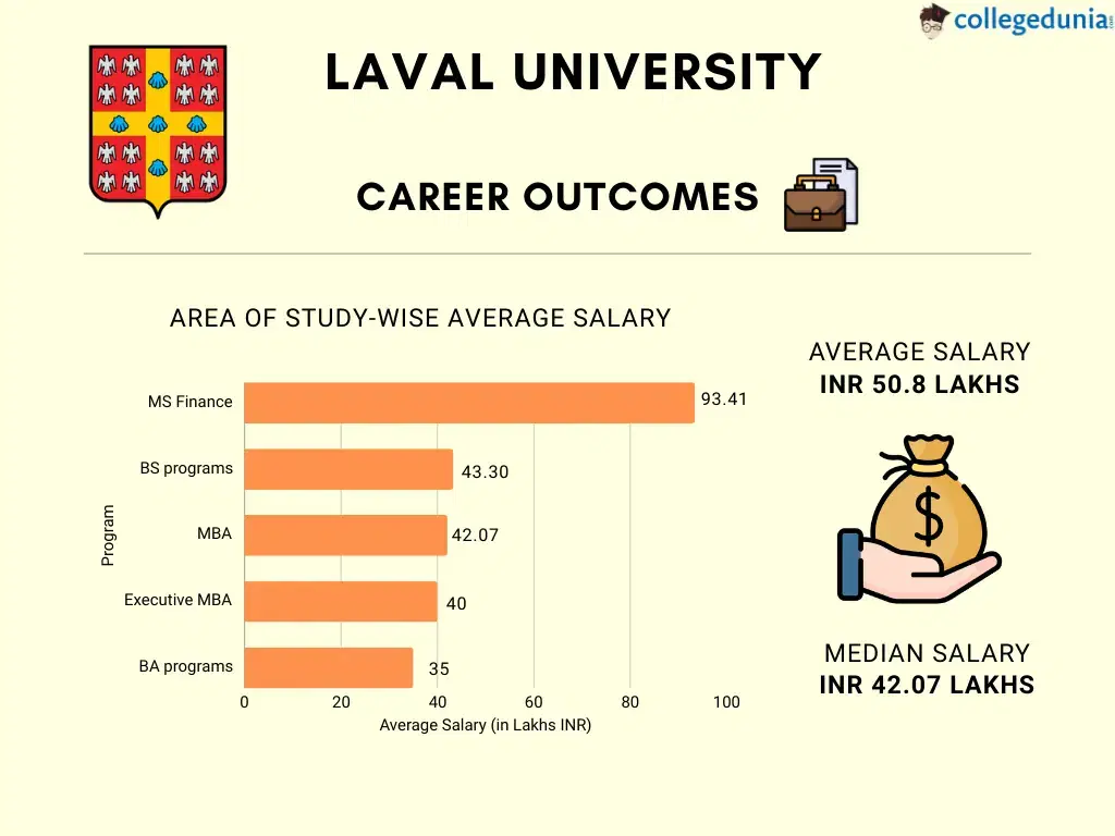 Laval University does not release official job or placement data, but the university is known for its career support services for its students and alumni. These services include career counselling, job search assistance, and professional development opportunities. The table below mentions the career outcome data for some of the programs at Laval University.