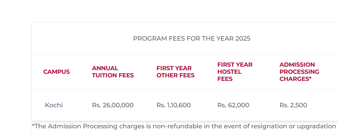 - Candidates need to pay ₹ 27.13 Lakhs in the first year.
