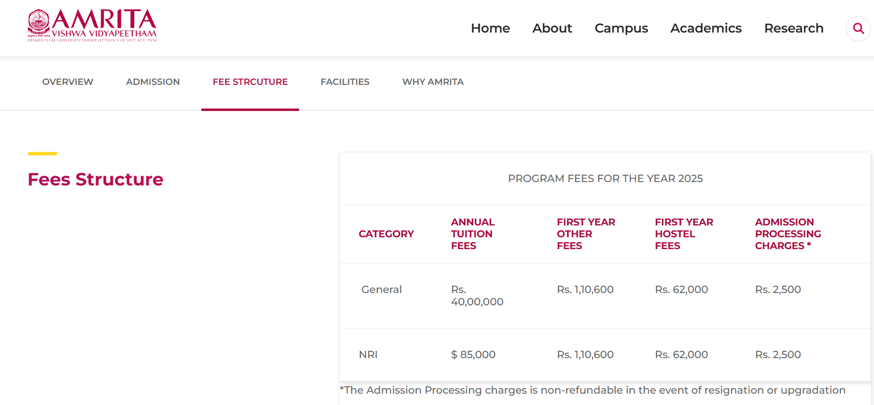 - This includes a total tuition fee of ₹ 1.2 Crore, Other Fees of ₹ 1.13 Lakhs.