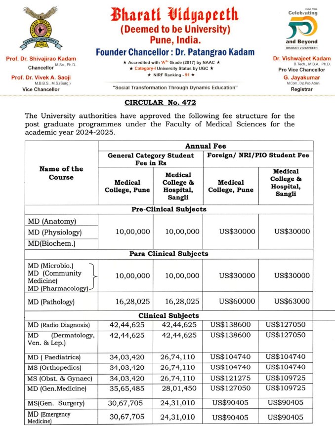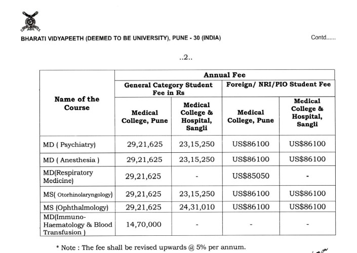 30 Aug, 2025 BVMC Pune M.S E.N.T. Fee structure 2025-26 has been released. The Academic Fee is ₹ 29.22 Lakhs/Yr.