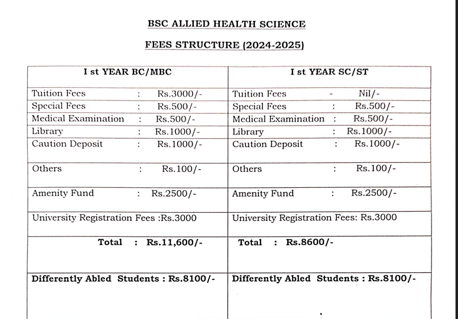 Government Chengalpattu Medical College Kanchipuram B.Sc Medical Radiology & Imaging Technology is offered as 3 Years Full Time program, with total intake of 20 seats. The minimum eligibility criteria for B.Sc is 10+2. The total fees for Government Chengalpattu Medical College Kanchipuram B.Sc Medical Radiology & Imaging Technology in 2025 is ₹ 21,600 for the complete course duration, which includes total tuition fees of ₹ 9,000. Earlier, the fees in 2023 - 2024 for B.Sc Medical Radiology & Imaging Technology was ₹ 9,000.
