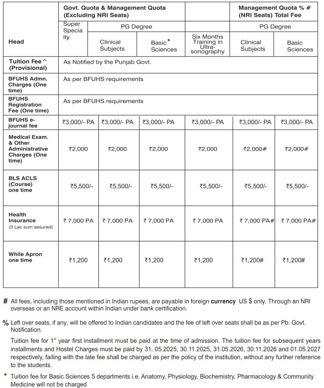 The above mentioned fee is as per Department of Medical Education and Research, Punjab. The fees might include components other than tuition fees.