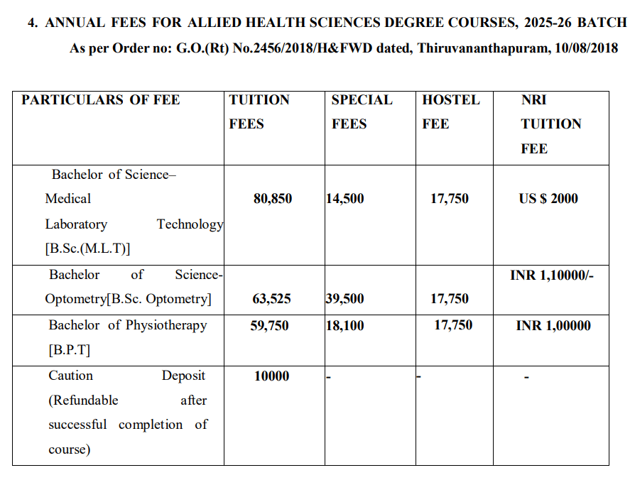 | Fees (2024 - 2025) | Year 1 (in INR) | Year 2 (in INR) | Year 3 (in INR) | Year 4 (in INR) |