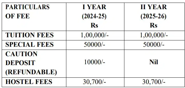 | Fees | Year 1 (in INR) | Year 2 (in INR) |