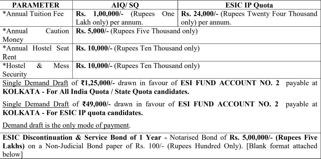 Earlier, MBBS fees at ESI Post Graduate Institute of Medical Science and Research Kolkata was ₹ 5 Lakhs (in 2019) for the entire course duration. This shows a fee increase of ₹ 25,000 over the year.