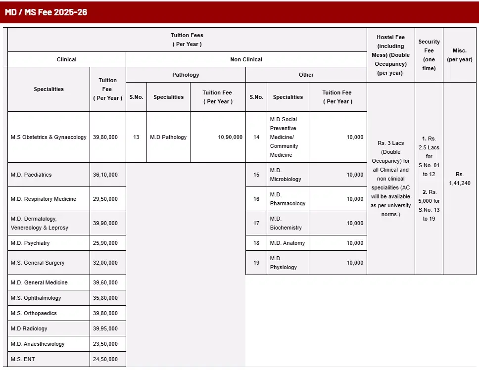 - Students need to pay ₹ 43.51 Lakhs in the first year.