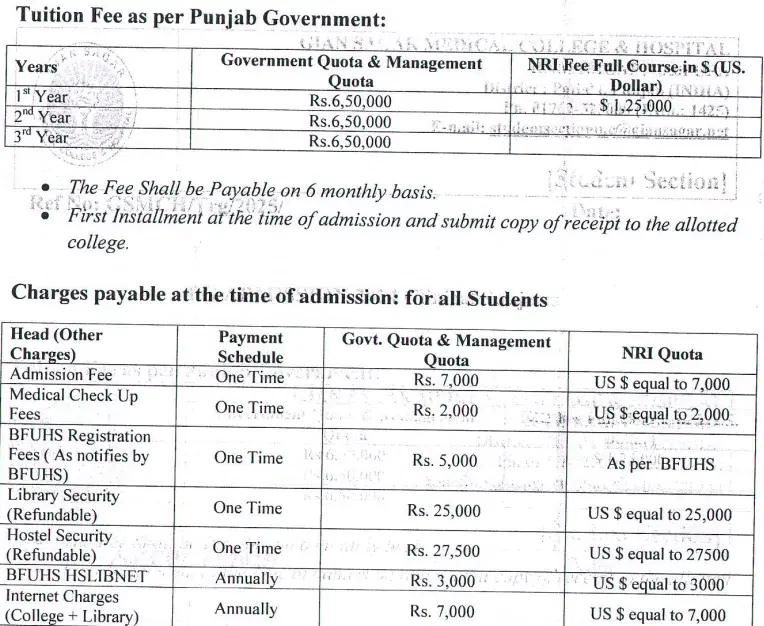 Gian Sagar Medical College & Hospital Patiala M.D Obstetrics & Gynaecology fees in first year is ₹ 6.99 Lakhs. The detailed fees is mentioned below.Gian Sagar Medical College & Hospital Patiala Hostel Fee is ₹ 16,500 to 26,400.