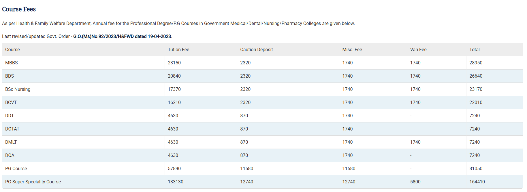 Ques. What is the total fee for the DDT course at GMC Thrissur?