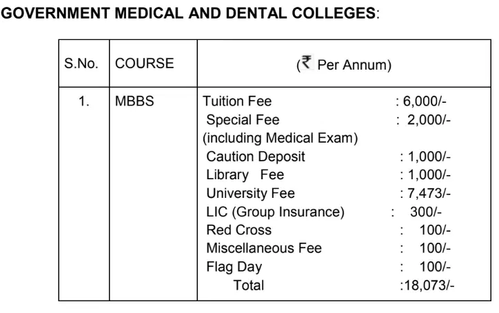 | Caution Fee | ₹1000 | ₹1000 | ₹1000 | ₹1000 | ₹1000 |