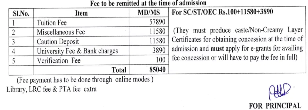| Fees (2024 - 2025) | Year 1 (in INR) | Year 2 (in INR) | Year 3 (in INR) |