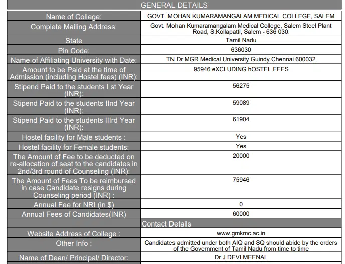 GMKMC Salem Hostel Fee is ₹ 36,000.