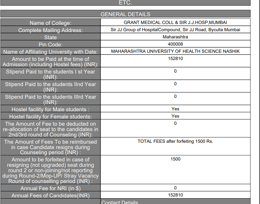 The college's annual tuition for OPEN category students ranges from 60,000 to 1 lakh INR, with hostel fees at 4,000 INR. Reserved category students pay significantly less, sometimes as low as 1,000 INR, with scholarships and freeships available to further reduce costs. The curriculum includes a mandatory 1-year internship offering a stipend of Rs. 6,000 to Rs. 18,000 per month, with placement in hospitals like Sir JJ Hospital. Post-internship, graduates have opportunities as Resident Medical Officers with salaries around Rs.