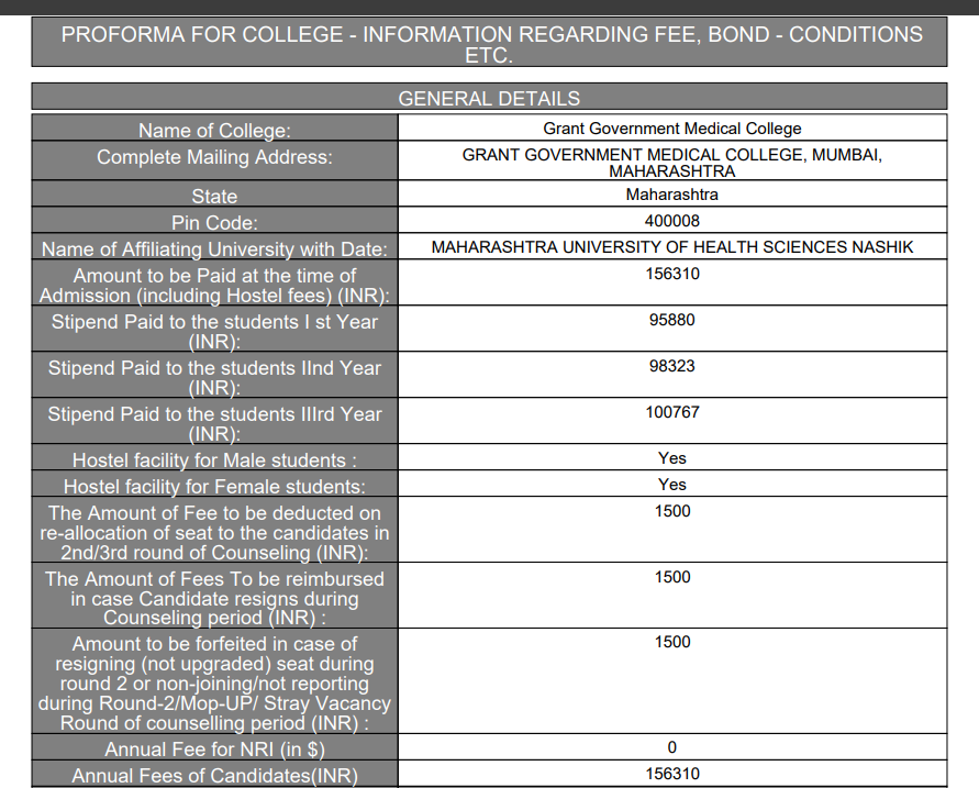 Grant Medical College Hostel Fee is ₹ 4,000.