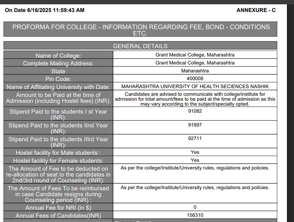 Grant Medical College Hostel Fee is ₹ 4,000.