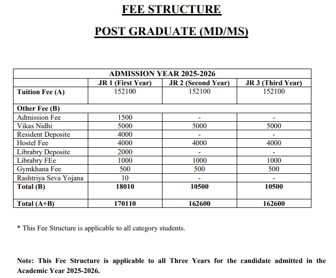 | Fees (2025 - 2026) | Year 1 (in INR) | Year 2 (in INR) | Year 3 (in INR) |