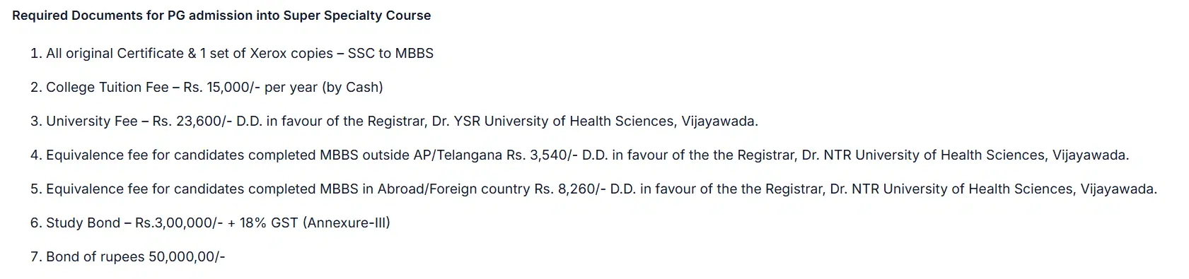 The minimum eligibility for admission to M.D Neurology at Guntur Medical College is Post Graduation+ NEET SS. Candidates are allotted seats based on NEET-SS.