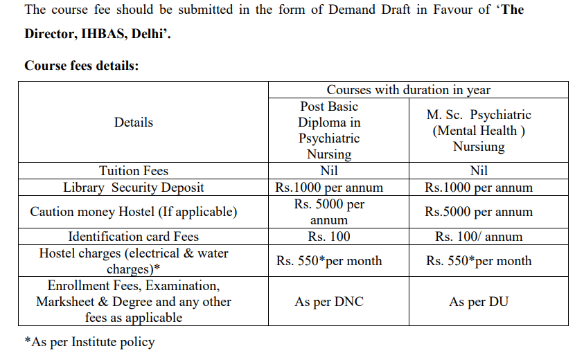 Diploma Psychiatric Nursing Fees at IHBAS covers a range of expenses, including tuition fee, course materials, and access to campus facilities.