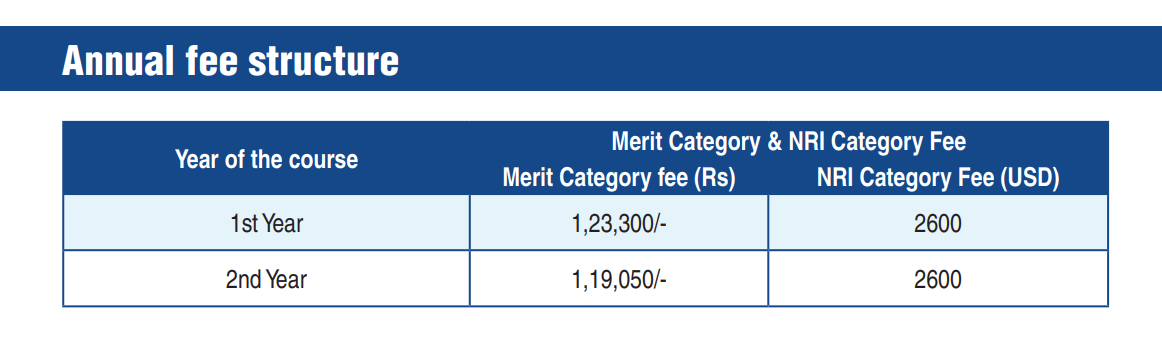 - Candidates need to pay ₹ 1.23 Lakhs in the first year.