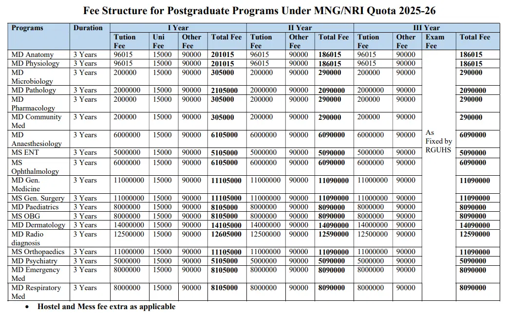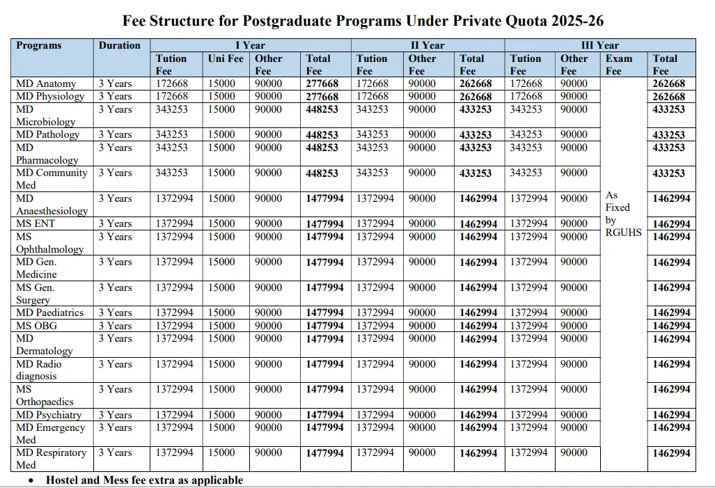 | Fees (2025 - 2026) | Year 1 (in INR) | Year 2 (in INR) | Year 3 (in INR) |