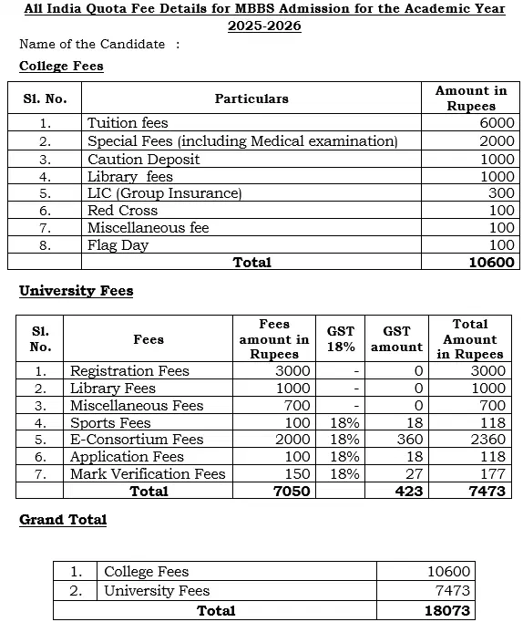 Scholarships are available, especially for SC/ST and economically disadvantaged students. The college provides a comprehensive library and a high placement rate, with graduates securing positions in prominent hospitals. During the internship, students receive a stipend of Rs 22,000-30,000 per month, with post-internship salaries starting at Rs 30,000-40,000 per month, potentially exceeding Rs 80,000 after further studies. Education loans are accessible, facilitated by the Vidya Lakshmi portal, with options available through the on-campus Indian Overseas Bank.