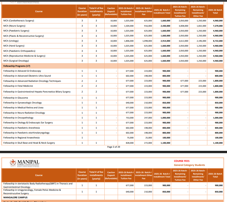 Earlier, Fellowship Paediatric Anaesthesiology fees at KMC Manipal was ₹ 8 Lakhs (in 2024) for the entire course duration. This shows that the fee has remained unchanged since 2024.