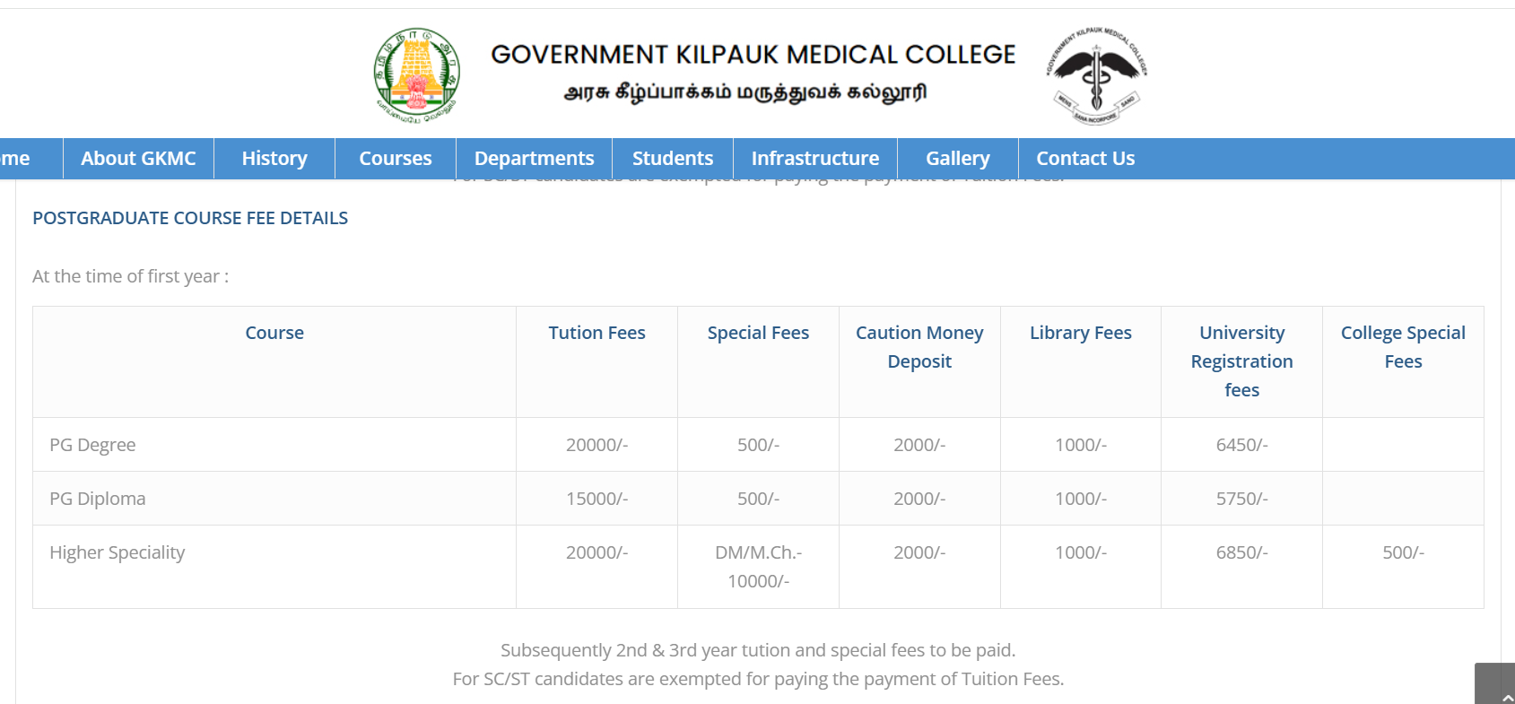 Government Kilpauk Medical College Chennai M.Ch Plastic Surgery fees in first year is ₹ 62,950. The detailed fees is mentioned below.Government Kilpauk Medical College Chennai Hostel Fee is ₹ 4,680 to 4,980.