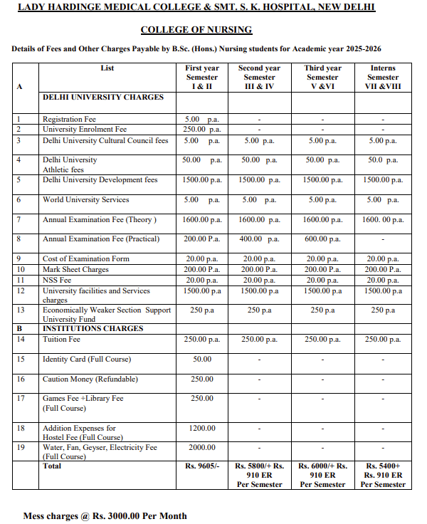 B.Sc. Nursing Fees Structure at Lady Hardinge Medical College