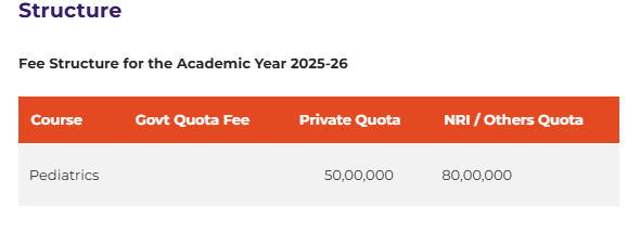 Earlier, M.D Paediatrics fees at MSRMC Bangalore was ₹ 1.95 Crore (in 2024) for the entire course duration. This shows a fee decrease of ₹ 45 Lakhs over the year.