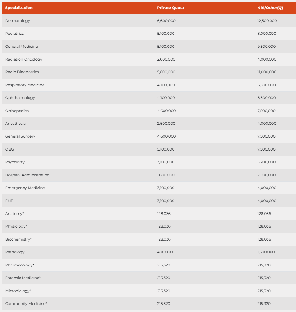 - Candidates need to pay ₹ 50 Lakhs in the first year.