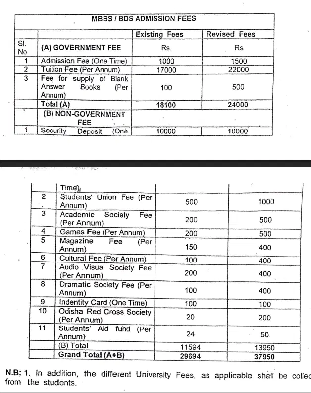 Fees are low, with the first-year tuition around Rs 30,000 annually and hostel fees at Rs 10,000. Additional costs for books and instruments can reach Rs 30,000. Students receive a stipend of Rs 15,000 during internships and a CAFAS Scholarship totaling Rs 50,000 over five years. Post-internship, graduates often secure jobs through government postings or private hospitals, with no formal campus placements but nearly 100% job attainment. Scholarships like Medhabruti, Prerna, and IOCL offer financial aid, with amounts up to Rs 90,000 annually for eligible students.