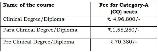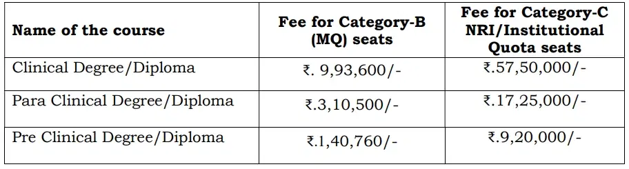 | Fees | Year 1 (in INR) | Year 2 (in INR) | Year 3 (in INR) |