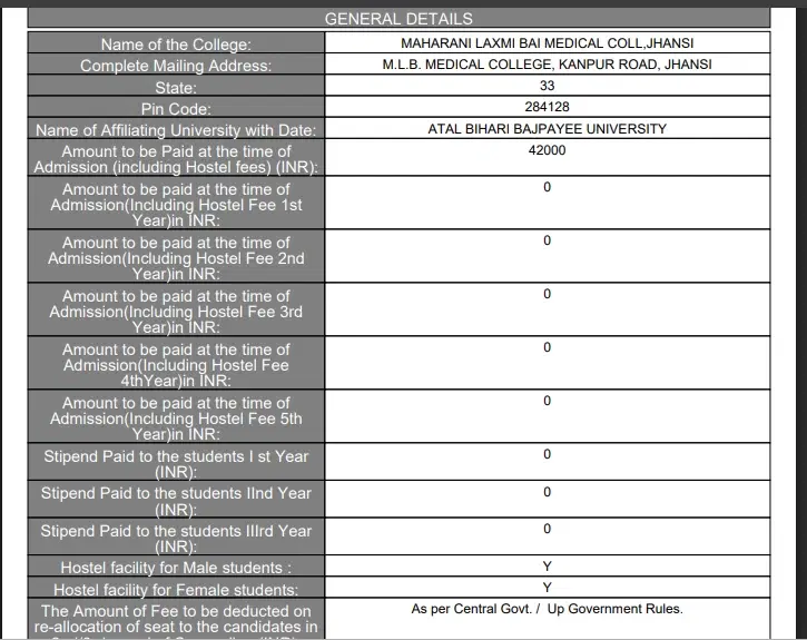 Maharani Lakshmi Bai Medical College in Uttar Pradesh is a government institution known for its affordable education compared to private colleges. Admission is through the NEET-UG exam, with only about 0.2% of participants securing seats in government medical colleges. The college charges annual tuition fees of 18,000 INR for general category students and 9,000 INR for reserved categories. Additional costs include caution fees (10,000 INR), development fees (4,000 INR), hostel fees (3,600 INR for single occupancy), and electricity fees (2,400 INR).