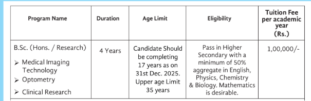 | Admission Timeline [B.Sc] | Jul 20, 2025 - Sep 30, 2025 |